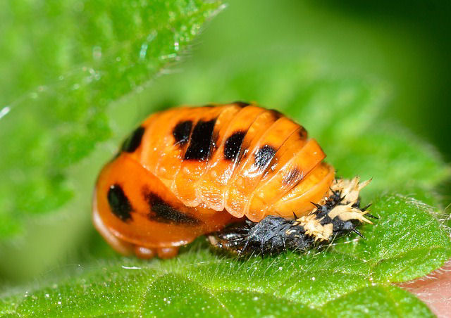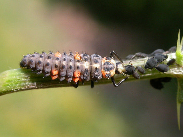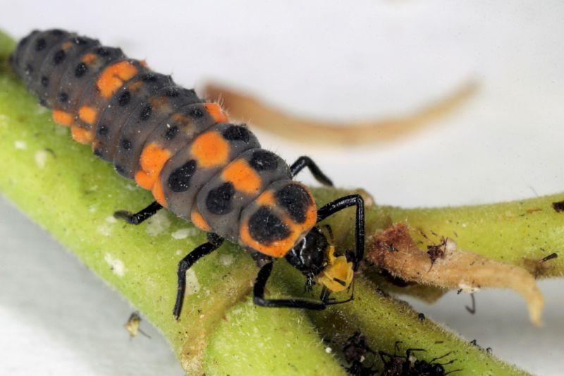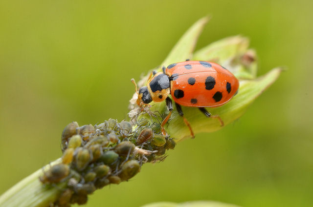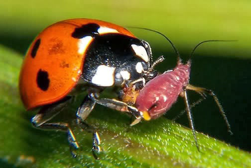 La mariquita, ya adulta, consume una media de cien pulgones al día.
