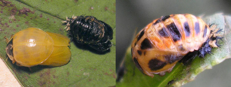 Al desarrollarse, éstas se envuelven en un capullo de donde diez días después emerge un insecto alado de color amarillo…