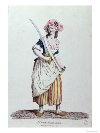 Se implantaron el azul, el blanco y el rojo de la bandera como colores preponderantes en la ropa. El sans-culotte, prototipo de revolucionario, portaba gorro rojo, carmañola (chaqueta estrecha con botones metálicos) y pantalones largos.
