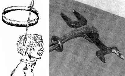 En algunas variantes se empleaban dos collares de bronce. Uno de los collares se unía a la pesa mientras que el otro se anexaba al poste. Ambos collares se giraban para permitir la entrada del cuello del prisionero. Cuando todo estaba preparado, el ejecutor operaba el mecanismo forzando uno de los collares hacia el exterior, quedando el otro en su sitio. Si estaba correctamente ajustado, dislocaba el cuello del prisionero y causaba una inconsciencia inmediata, seguida de la muerte.