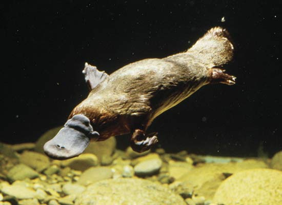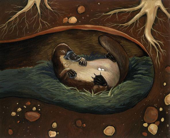 El ornitorrinco es un animal peculiar que parece ser un compendio de otros animales. Tiene pico de pato, cola de castor, piel de topo, espolón de gallo y patas de rana. Mide entre 40 y 60 centímetros y pesa unos 60 kilos. Suele alimentarse de larvas e insectos que busca con su pico en la tierra. Suele vivir en madrigueras al lado de ríos, donde gusta nadar y habitar. En la época de celo, usan un espolón que tienen en la parte inferior cerca de las patas traseras como arma venenosa para competir con otros rivales. Para gestar, las hembras se refugian en las galerías que usan como madrigueras y ponen de 2 a 3 huevos con textura comprensible.