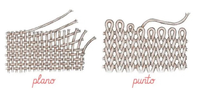 Tela de punto: el tejido se forma con un sólo hilo que se va entrelazando como una malla, lo que le dota de cierta elasticidad. Algunas telas de tejido de punto son: algodón, licra, viscosa, blonda, nailon, etc.