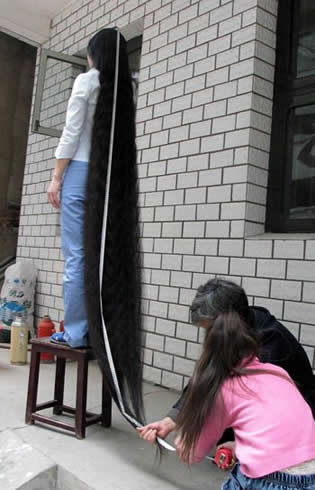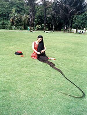 El récord Guiness actual es para la china Xie Qiuping, con un cabello que mide 5,62 metros (récord fechado el 8 de mayo de 2004). Comenzó a dejarse crecer el pelo cuando tenía 13 años, en 1973.