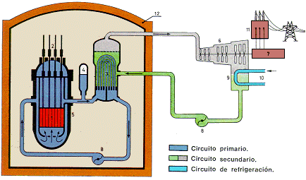 El producto de todas esas reacciones es calentar el agua, que se expulsa con una bomba fuera del reactor y se emplea para calentar más agua en un sistema separado de tuberías. El vapor de este segundo sistema mueve los generadores que crean la electricidad.