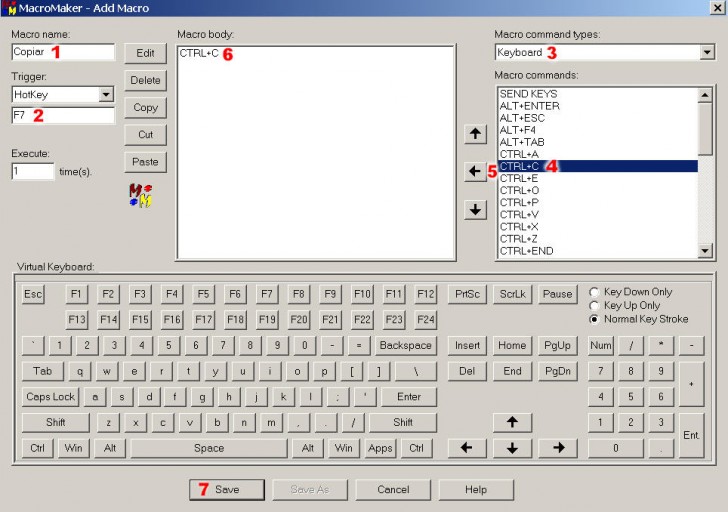 6 – Aquí debe aparecer el macro que realizará la tecla F7, en este caso CTRL + C.