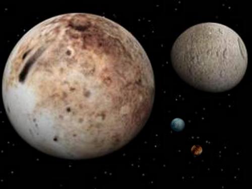 Plutón junto a sus lunas Caronte, Nix e Hidra.