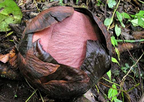 La Amorphophallus titanum es también conocida como aro gigante o flor cadáver, ya que desprende un olor similar a la carne podrida. Es imposible estar cerca de ella mucho tiempo debido a su fuerte fragancia.