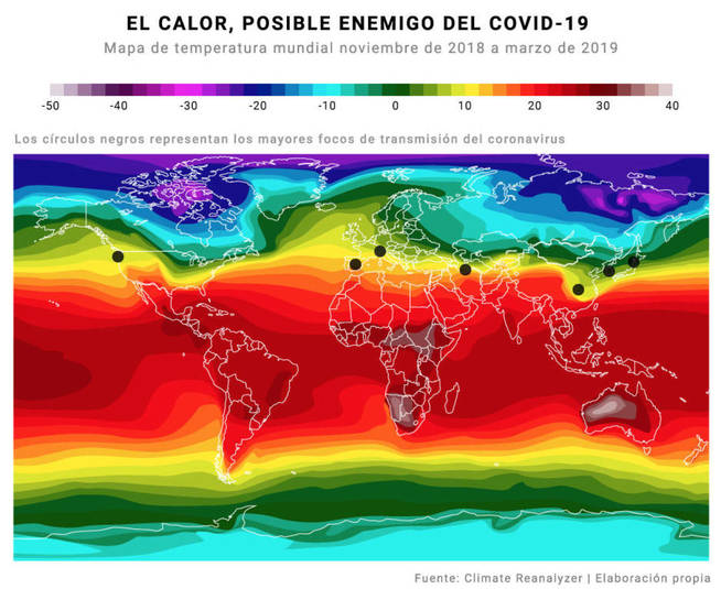 «Esto sugiere que, aunque la propagación del coronavirus disminuya a mayor humedad, su efecto se limitaría a latitudes por encima de los 40 grados Norte, que incluyen la mayor parte de Europa y América del Norte», dijo.