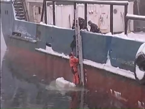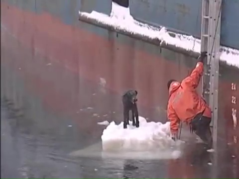 La secuencia es tiernísima y en ella vemos cómo el marinero ruso se lanza él mismo a las gélidas aguas para poder coger al perro sano y salvo, algo que hay que elogiar, pues el hombre demuestra tener una gran valentía y habilidad para el rescate.