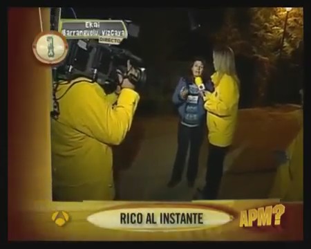 El otro día vi que habían vuelto a emitir el programa «Rico al instante» y enseguida lo relacioné con el incidente que pasó en una temporada pasada, cuando una madre se negó a que su hijo participara en el concurso. Por lo visto, cuando llamas o envías el SMS (no sé cómo funciona), te hacen una visita a tu casa para (imagino) terminar de darte el premio o decirte que puedes conseguirlo.