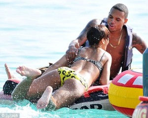 En aquellas aguas caribeñas, Rihanna y su papasito Chris Brown han jugado al corre que te mojo, practicado el jet sky y tomado el solecito mientras se relajaban al calor de su amor. Pero eso sí, ha sido una estupenda oportunidad de ver a Rihanna ligerita de ropa, cual chica Bond contoneándose por la paradisíaca playa.