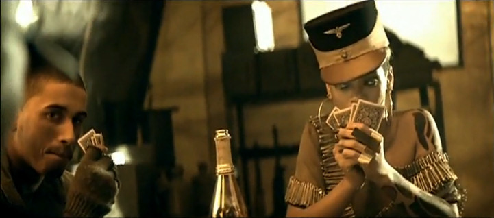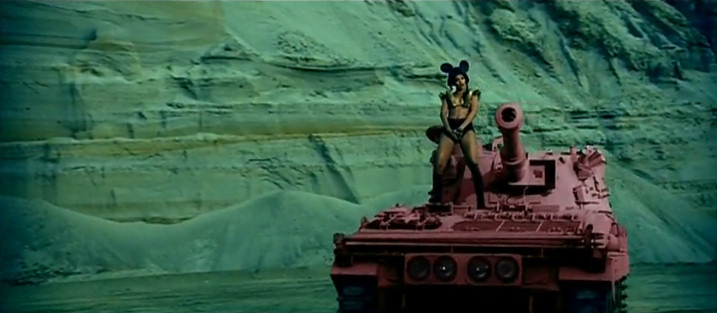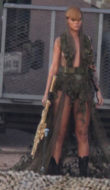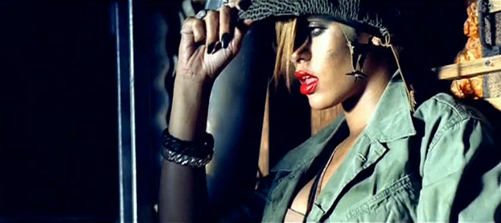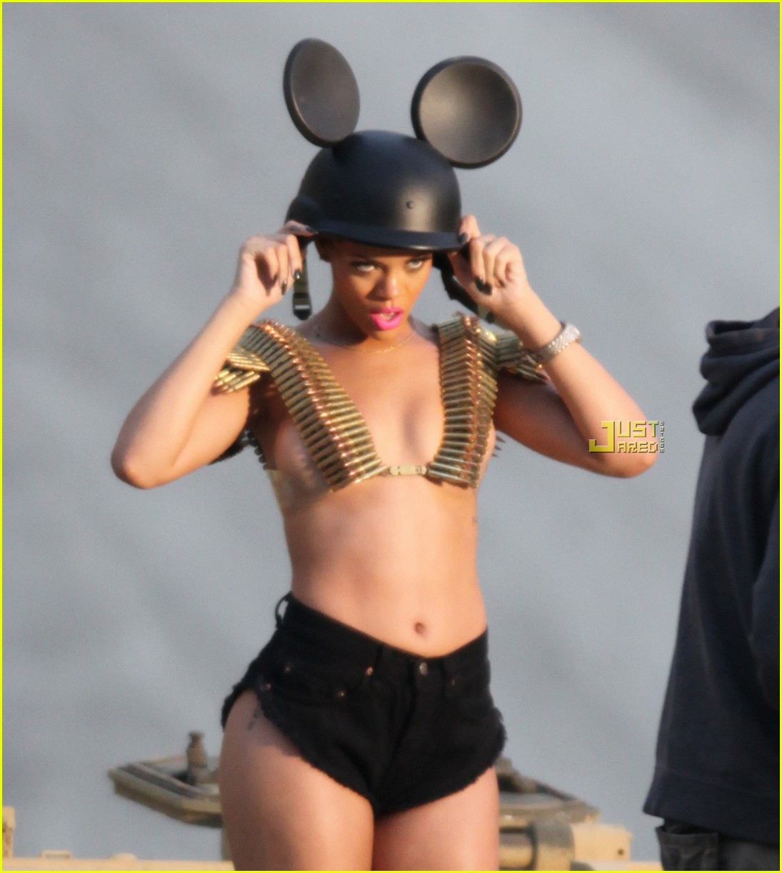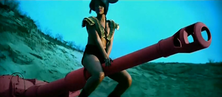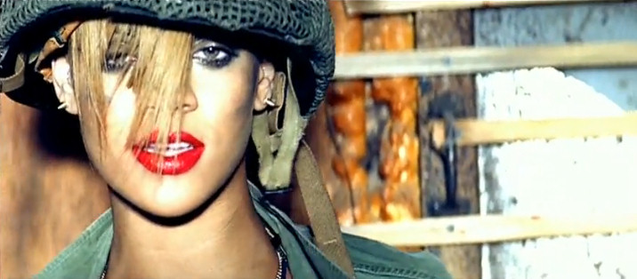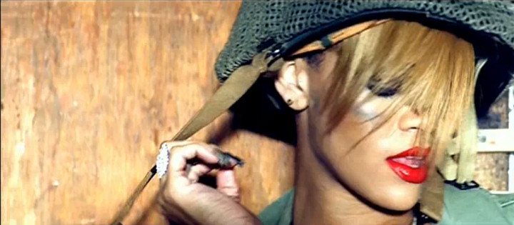 Pues sí que se ha puesto combativa la Rihanna…. Me gusta mucho la parte del vídeo que sale encima del tanque rosa con el casco de orejas de Mickey Mouse y la parte del principio revisando a la tropa…