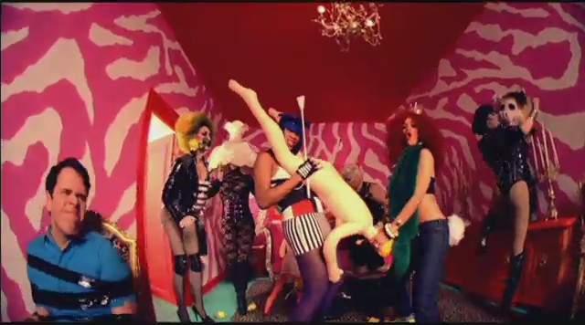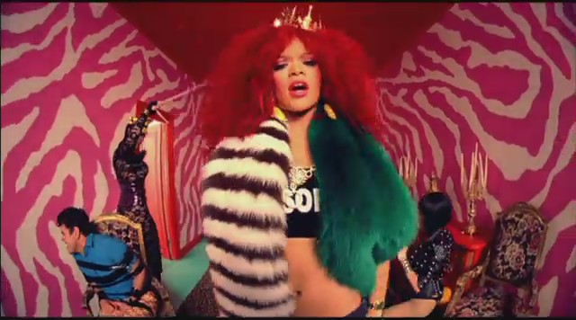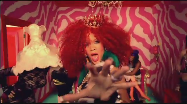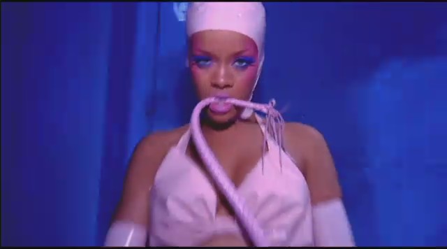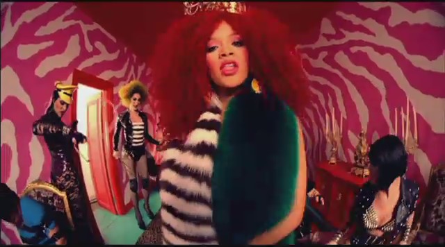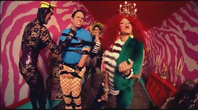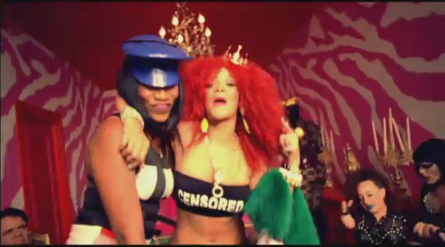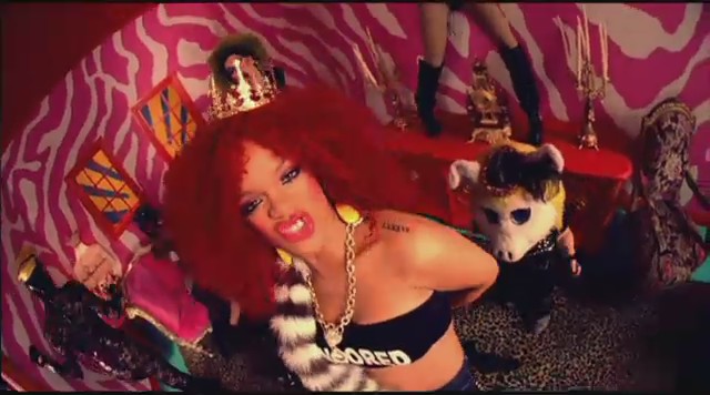 En otra secuencia aparece en una habitación colorida mientras varias personas llevan a cabo prácticas sado, como atarse con cuerdas o dar azotainas con látigo, mientras Rihanna lleva una corona en la cabeza y un top en el se lee «Censurado«; a todo esto, Perez Hilton recibe lo suyo XD. En las siguientes escenas Rihanna aparece vestida de manera elegante ejerciendo de ama dominante mientras pasea al bloguero Perez Hilton por el jardín y este se comporta como un perrito, adoptando el rol de sumiso.