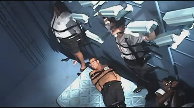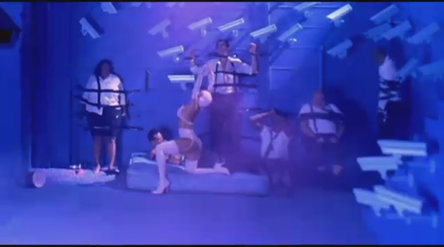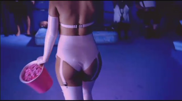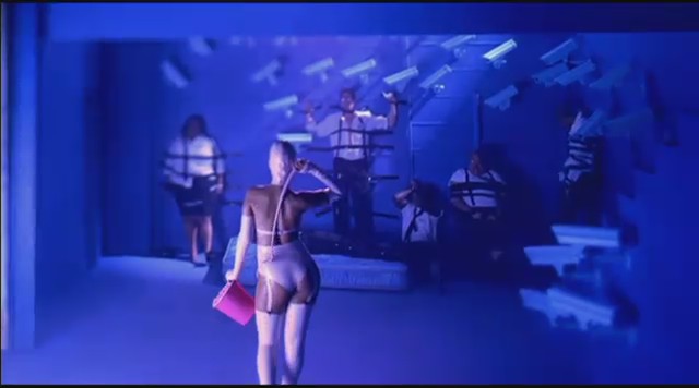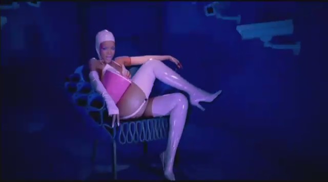 Siguiendo con las sugerentes escenas, Rihanna aparece en una sala oscura llena de cámaras, vistiendo un cortísimo traje de látex rosa mientras come unas palomitas sentada en un sillón y observa cómo la prensa está sujeta con cuerdas. Entonces Rihanna se levanta y se dirige a ellos con un látigo y les tira las palomitas para luego azotarles. A una mujer le tapa la boca con cinta y luego le besa.