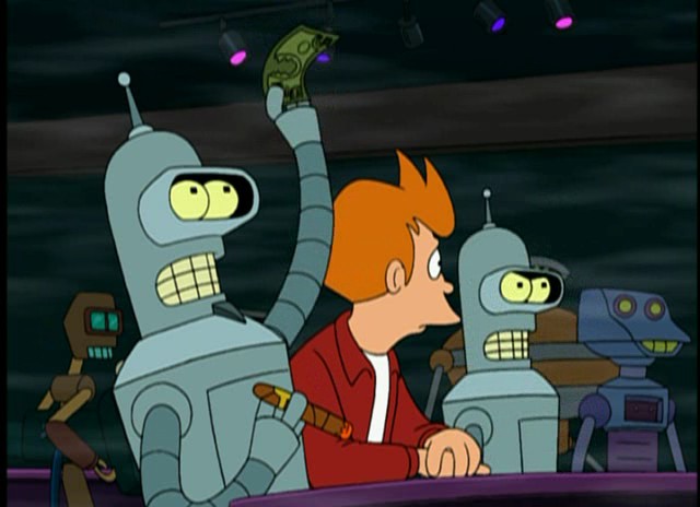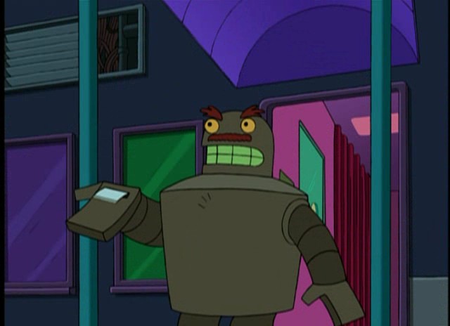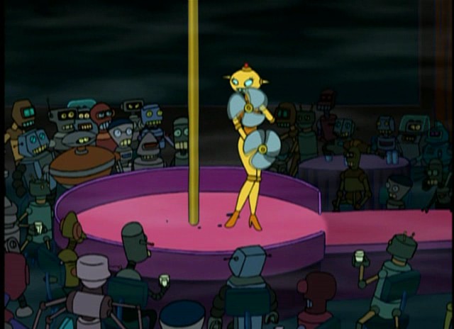 Directamente desde el episodio “El menor de dos malos”, recojo este Momento Futurama donde vemos los locales picantes que disponen los robots en el año 3000.