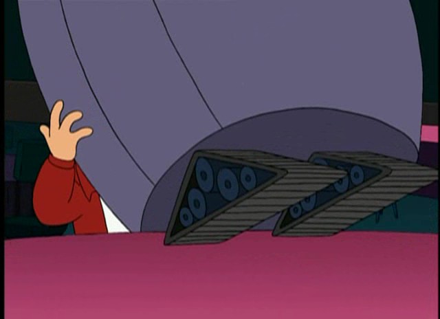 Otra frase muy buena que dice Bender es: “Uh la la, qué carcasa más rica, está fabricada en México, creo” a lo que Flexo contesta: “Y no es de silicona, es puro tungsteno, y de primera calidad”. O cuando el pervertido de Fry les señala su atracción por un ventilador exhausto.