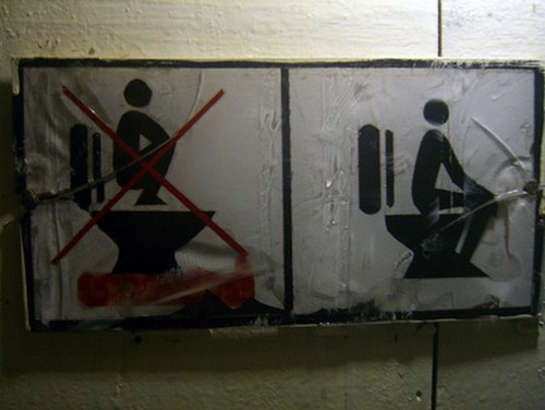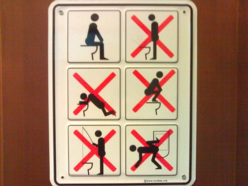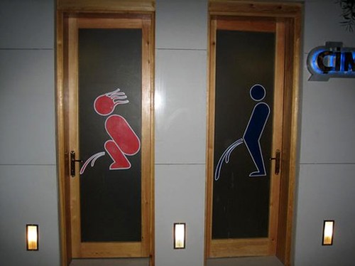 A continuación varias imágenes que podemos ver en bares, restaurantes y demás sitios públicos cuando vamos al baño. Casi todas se distinguen por su nota de humor y la originalidad que destilan. Ir a los aseos ya no será tan aburrido…