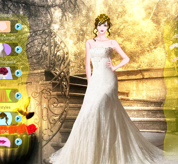 Juego para vestir a la novia con trajes y vestidos de novias para hacer una sesión fotográfica. Podrás escoger entre los diferentes trajes de novias, velos, zapatos, ramos de flores y peinados de boda. Haz que la mujer tenga una sesión de fotos espléndida.