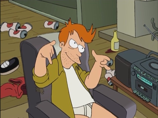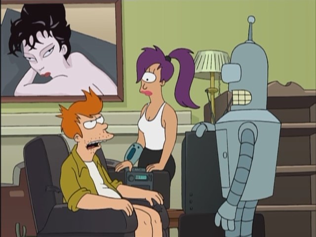 Más tarde, Bender le echa en cara a Fry que les ha dado de lado a él y a Leela diciendo: «si, a ti sólo te interesan las canciones antiguas que hablan de culos».