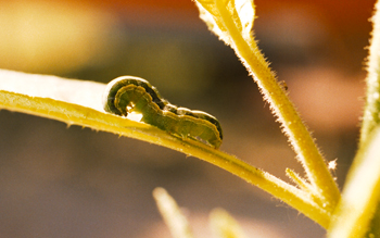 Podemos observar un claro ejemplo en la planta del algodón, que es atacada por orugas rosquilla verde (Spodoptera exigua). Las orugas muerden las hojas y dejan la saliva (o esputo) en las mismas, lo cual activa el sistema de alarma de la planta.