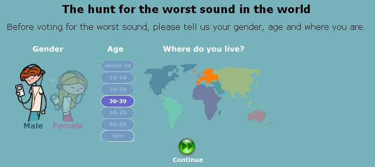 En la página Sound 101 se elaboró hace tiempo una encuesta para averiguar los sonidos que peores votaciones conseguían de una base de datos de 30 diferentes, logrando el primer puesto de entre los más horripilantes y menos agradables, el de un hombre que vomitaba.