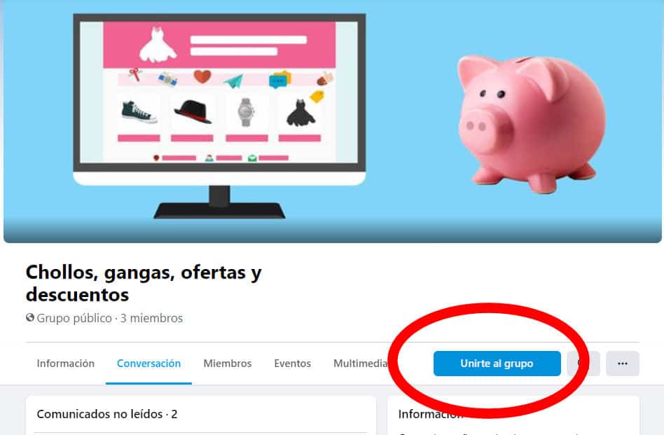 1. Unirte al grupo Chollos, gangas, ofertas y descuentos.