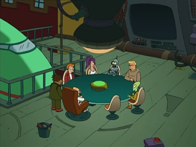 Mientras, Bender suelta una de sus “citas célebres”: “Soy Bender, recuerda, el adorable granuja” XD.