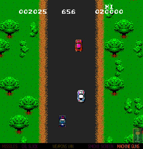 Persecuciones, tiros y velocidad es la fórmula de diversión propuesta por Spy Hunter, un videojuego de conducción aparecido en el año 1983 que resultó todo un éxito y en el que debemos asumir el papel de un espía que conduce un sofisticado automóvil.