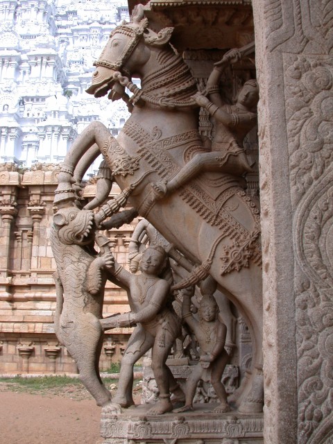 Por todo el templo pueden verse hermosos relieves y esculturas que representan pasatiempos de las escrituras como el Ramayana y el Mahabharata, y desde sus murallas se tienen unas vistas formidables que te hacen olvidar que todavía estás en el mundo material.