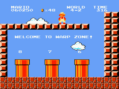 En Super Mario Bros también hay fallos de programación, aunque estos solo ayudan a aumentar su mito. El más conocido y divertido es el denominado Minus World, compuesto por tres fases en la versión japonesa del juego y por una en la versión occidental.