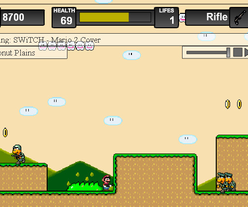 Os presentamos un juego de Super Mario World en el que la sangre abunda, ya que tienes muchas armas, como un rifle, una gran llave mecánica, un bazoka o una escopeta, para acabar con todos los enemigos que se crucen en tu camino. Dispara con el botón C, cambia las armas con las teclas 1, 2, 3 y 4 y salta con el botón X. El juego es bastante fácil, no se requiere mucha maña para recorrer sus escenarios, y resulta muy divertido disparar a los koopas y demás enemigos de una manera tan sangrienta.