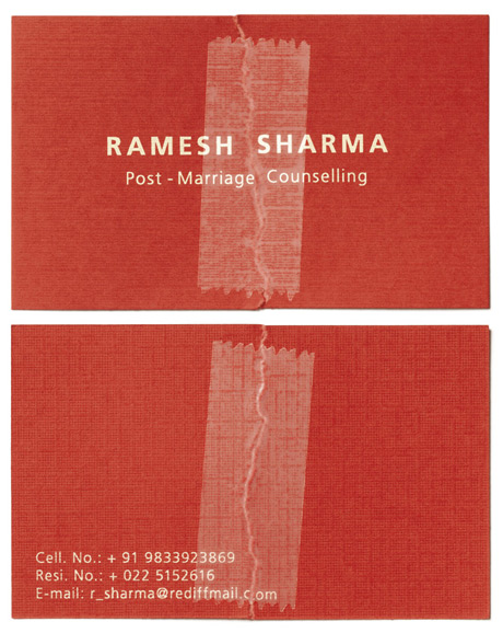Tarjeta de consultor post-matrimonial simulando estar rota… muy adecuada.