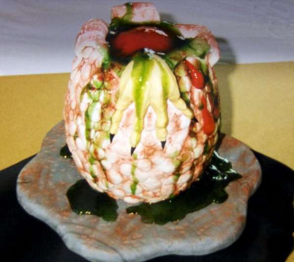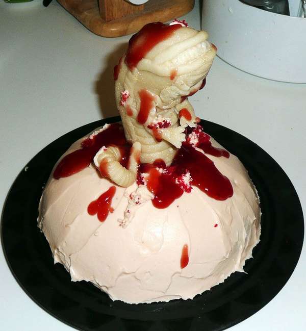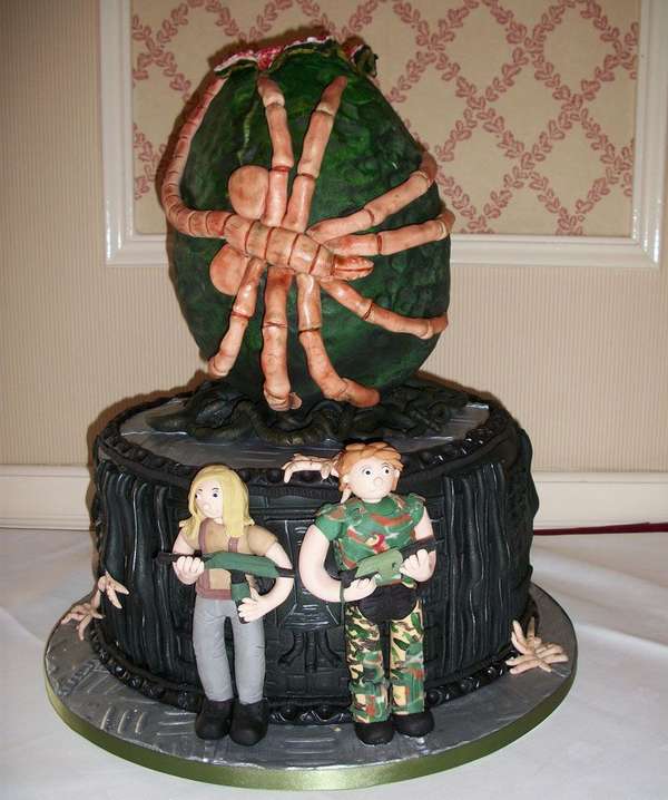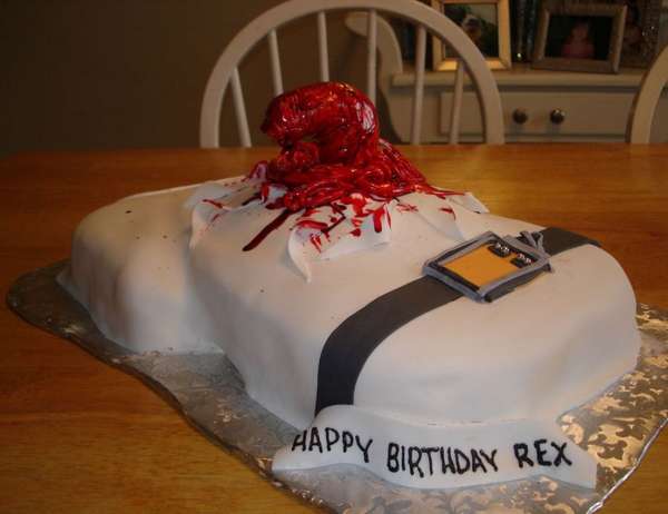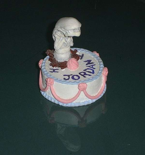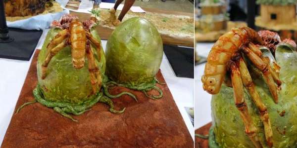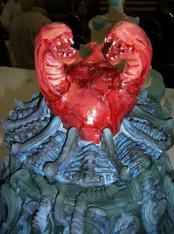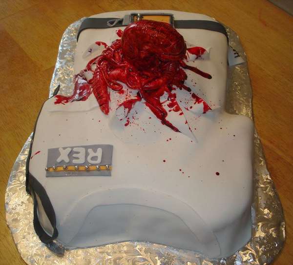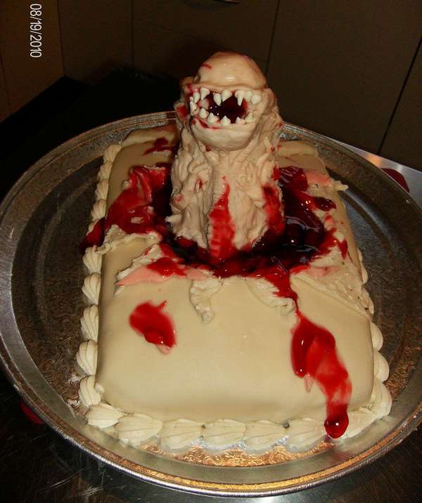 Aunque estas tartas y pasteles no resulten apetitosas a simple vista, seguro que a los fans de las películas de terror y la saga Alien les parecen divertidas y bien trabajadas. No todos los días puede uno comerse a un revientapechos (chestburster), un atrapacaras (facehugger) o un huevo de Alien XD.