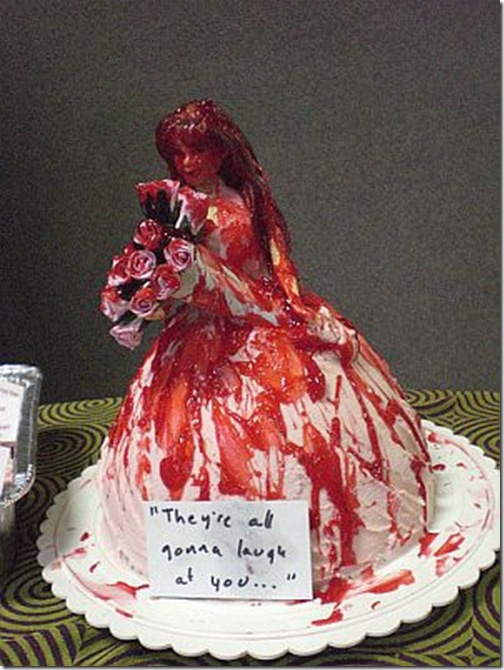 Esto debe ser una alegoría al baño de sangre de Carrie: «Todos se van a reír de ti» era lo que decía la madre loca de Carrie.