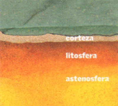 Superficie terrestre – La litosfera tiene dos capas, corteza y manto superior. La primera puede ser oceánica o continental. Un sector del manto se llama astenosfera.
