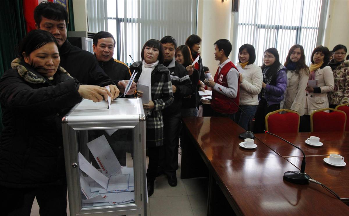 La gente dona dinero para las víctimas del terremoto y el tsunami en Japón en la oficina de la Cruz Roja vietnamita en Hanoi, viernes 18 de marzo.