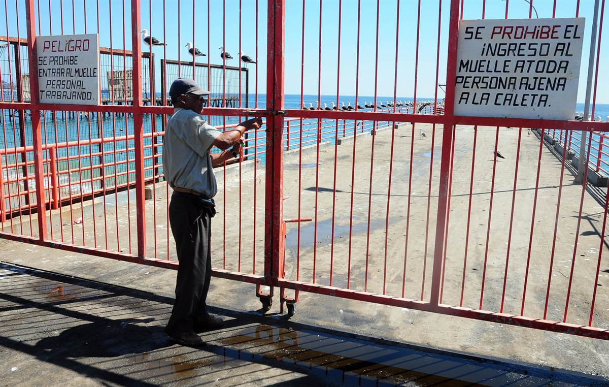 Un guardia cierra las puertas de uno de los muelles del puerto de Valparaíso, a 92 kilómetros al norte de Santiago, después de que el presidente chileno Sebastián Piñera hiciese pública una alerta preventiva ante el tsunami que generó el terremoto en Japón. Las reacciones ante una posible llegada de una ola gigantesca fueron variadas en todos los países de la costa latinoamericana, muchos de los cuales han sufrido devastadores terremotos en el pasado.