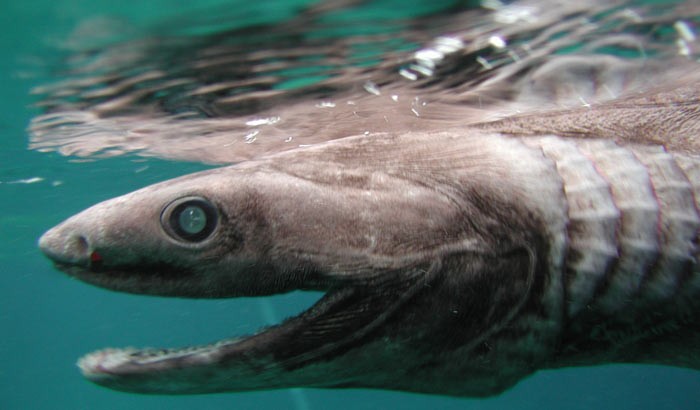 para mi no es un tiburón prehistórico sino una especie encontrada por primera vez y no es muy común de ver por que vive a muchos metros de profundidad es una especie encontrada por primera ves pero eso no significa que sea prehistórico por que el espacio exterior fue mas explorado que el fondo del océano y asta hoy en día siguen apareciendo especies nuevas de animales marinos grandes como ballenas