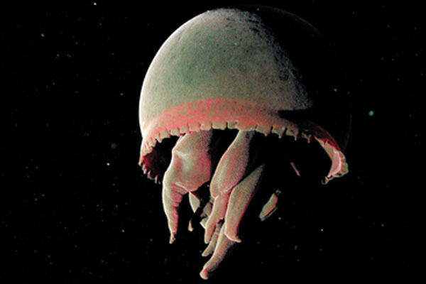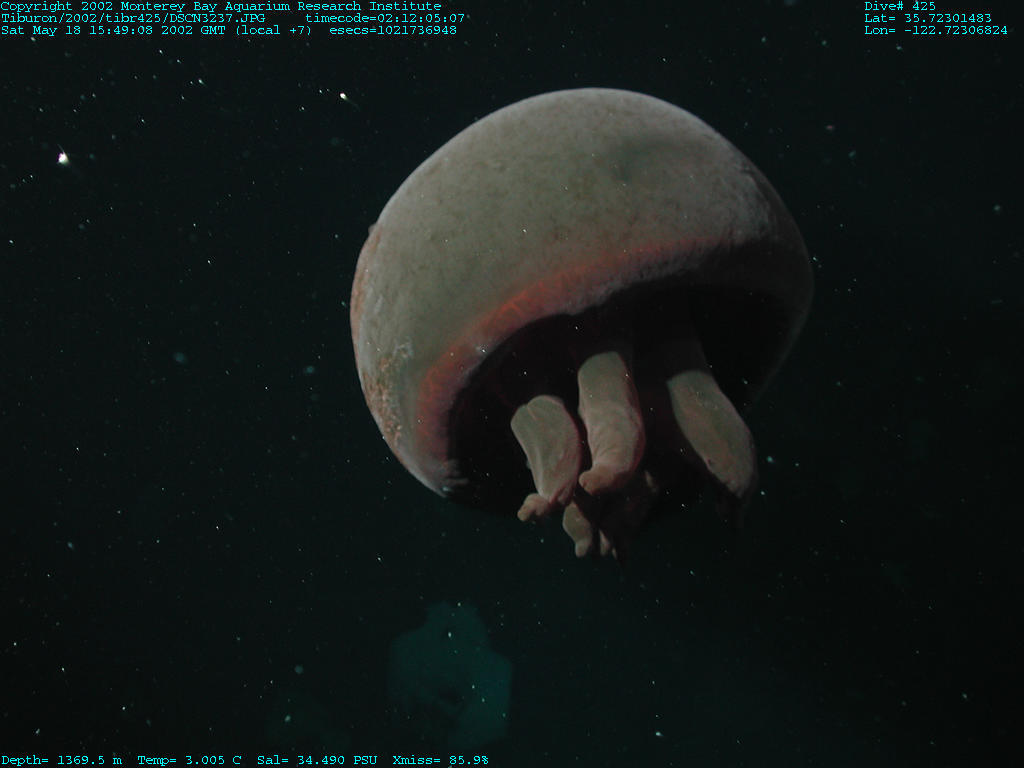 La Tiburonia granrojo es una medusa muy peculiar perteneciente a la familia de las Ulmaridae, siendo tan exclusiva, que es la única de su género identificada.