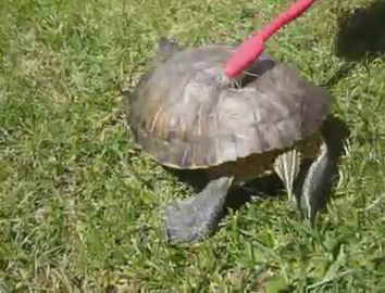 En este vídeo vemos una tortuga muy marchosa, que debe estar moviéndose del gustirrinín que le producen al rascar el caparazón, o eso creo.
