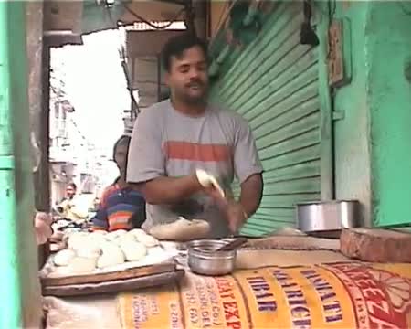 Otro panadero indio que hace chapatis (panes) a gran velocidad, parece que esté bailando o rezando.