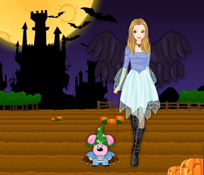 Barbie asistirá hoy a una fiesta de trajes de Halloween. Debes escoger los disfraces y ropa que llevarán ella y su mascota. Como es una fiesta de miedo, asegúrate que su traje es adecuado al espíritu de Halloween. Para rematar, tienes muchos accesorios y también podrás cambiar el maquillaje o el peinado, pudiendo elegir el color de las reflejos de pelo incluso.