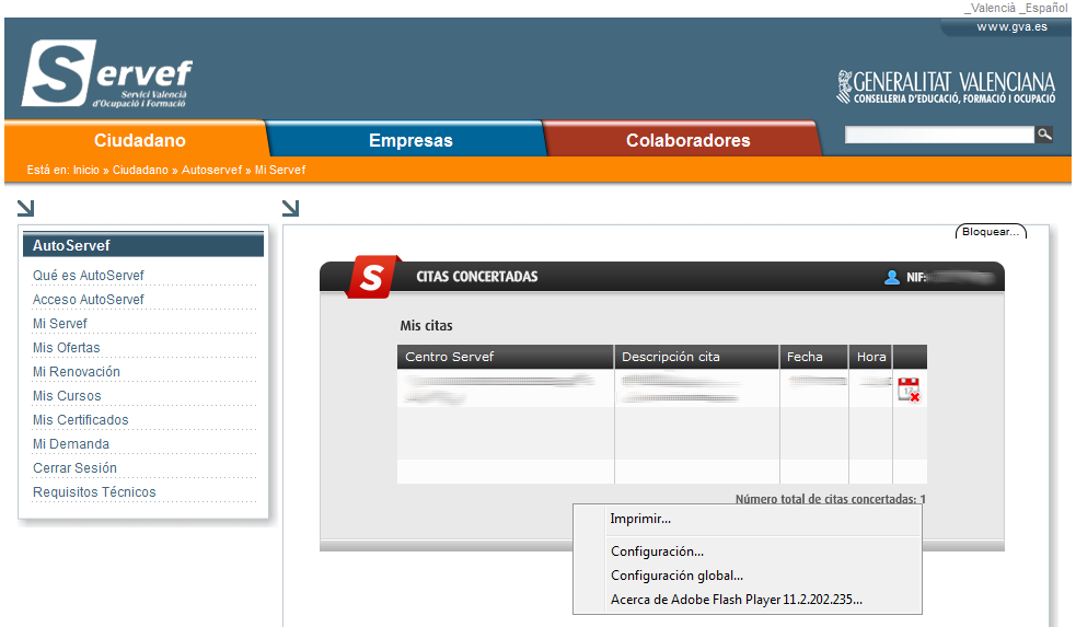 Y si fuera para algo rotundamente necesario… pues podría tener un pase. O medio, sabiendo que estamos ante la web de un organismo público y debe ser accesible (Flash es el opuesto absoluto a la accesibilidad). Pero es que lo usan para una puñetera aplicación para dar y gestionar citas previas. Vamos, que no hace falta ninguna. Que se fijen en la aplicación para pedir cita al médico (en uno de los pocos momentos en los que su servidor Oracle no esté caído, pero bueno, eso es otro tema).