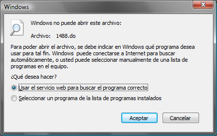 Si descargamos eso, obviamente acabaremos con un fichero con extensión .do en el ordenador. Suponiendo que estemos en Windows, pueden pasar dos cosas. Si no tenemos software para desarrollo web con Java instalado, saldrá este odiado cuadro de diálogo: