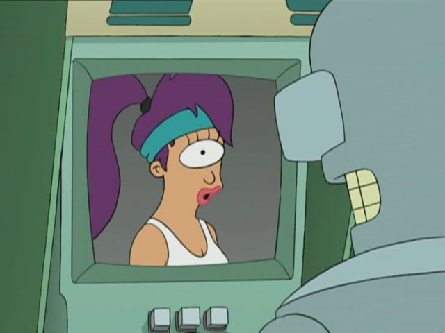 Posteriormente, cuando Leela está hablando, Bender le interrumpe para ahondar en su narcisismo, y despreocupándose de un Fry a punto de morir, le pregunta a Leela: