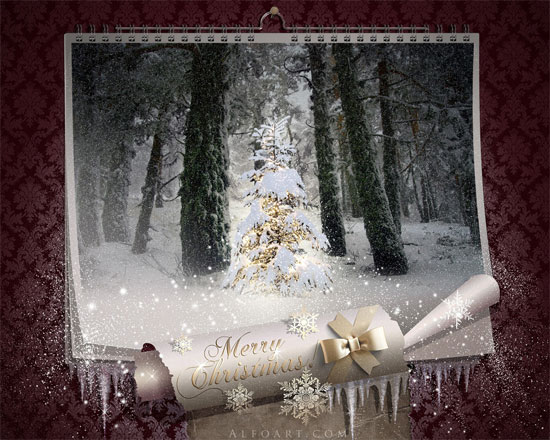 Con este escenario tan navideño y festivo podemos felicitar estas fiestas a todo el mundo. Uno de los aspectos más interesantes de este tutorial, es aprender a crear el efecto de las sombras.
