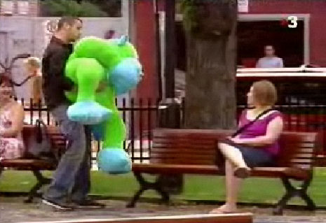 En esta broma de Just for laughs, vemos como estos cachondos artífices de bromas a transeúntes, actúan en un parque en el que camuflan a un niño dentro de un muñeco gigantesco, y el gancho pide a la gente sentada en los bancos que lo cuiden por un momento.