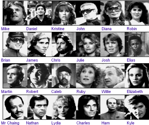 Personajes principales de la serie. Según una corrección de la lectora Francesa, el personaje nombrado como Ruby en realidad era Harmony, y era la novia de Willie. Ruby era la mujer mayor de pelo blanco que los visitantes liquidaron cuando ella y otros intentaban rescatar a Julie de una tortura reversiva.