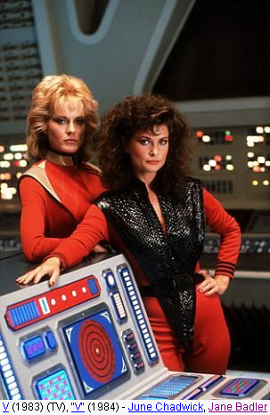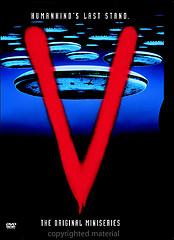El argumento de “V” es efectivo e interesante y actualmente creo que la serie goza de una buena historia. Un buen día, miles de naves aparecen sobre los cielos de la Tierra, en varias localizaciones del globo y se habla de una invasión por parte de los extraterrestres. Después se descubre por un comunicado, que vienen en son de paz con la intención de cooperar con los humanos. Algunos los creen y los reciben bien, pero otros no se fían y se va fraguando una asociación llamada “La resistencia”, que lucha contra la invasión extraterrestre que en verdad tiene unos fines menos filantrópicos. Luego descubren que son lagartos con apariencia humana y que vienen a por carne humana y agua ¡toma ya!