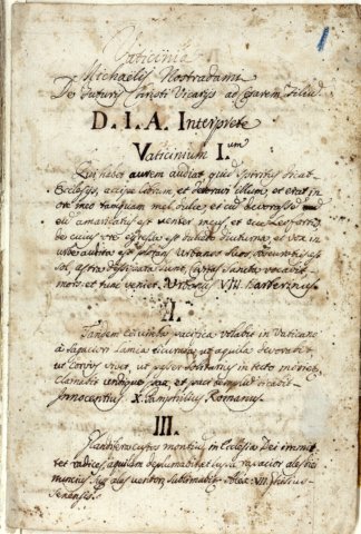 En 1982, los periodistas italianos Enza Massa y Roberto Pinotti se hallaban en la Biblioteca Nacional Italiana de Roma, cuando se encontraron con un sorprendente descubrimiento, un manuscrito de 1629 titulado «Nostradamus Vaticinia» (su nombre completo es «Vaticinia Michaelis Nostradami de Futuri Christi Vicarii ad Cesarem Filium D. I. A. Interprete«).